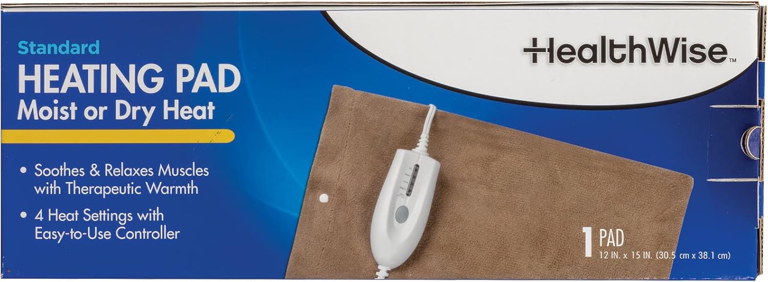 8 reviews for HealthWise Deluxe 12” x 15” Heating Pad with Moist & Dry Heat | Four-Heat Settings | Soothing Warm Relief, Brown (59-310)